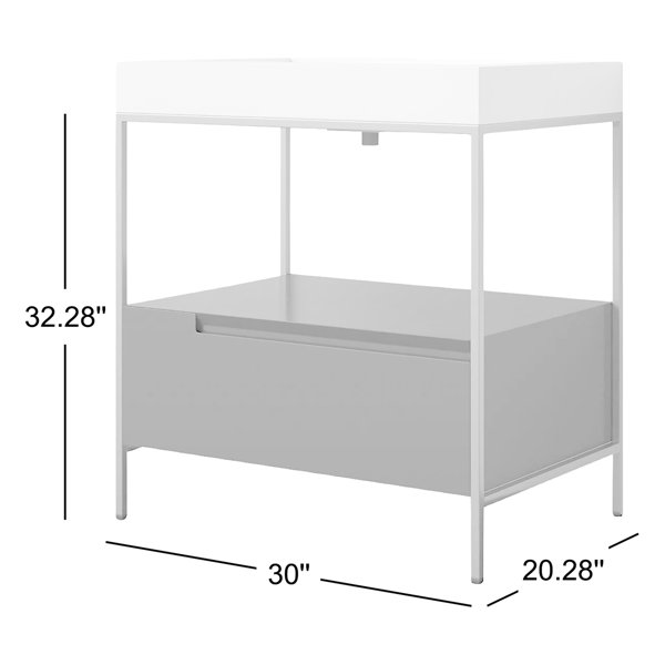 Love the lines and the blue color... The one drawback is the drawer isn't big enough to fit toilet paper!