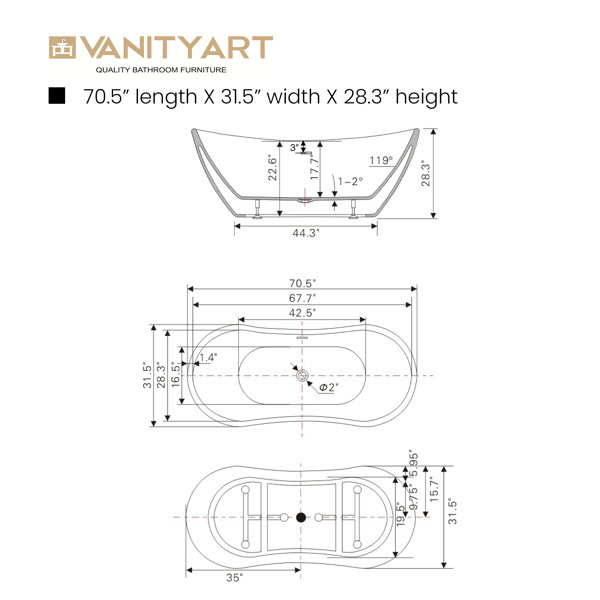 My dream tub! 71” and it’s huge! Turned my bathroom into a luxury bath instantly after installing! I’m so obsessed!