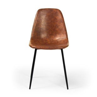 Small in stature, big on style – the chair that sits wherever you need it. Faux-leather upholstery adds a hint of industrial edge to this dining chair’s mid-century-inspired bucket seat. It rests on tubular steel legs in a powder-coated black finish, with plastic glides to protect your floors from scuffs. Set of two.