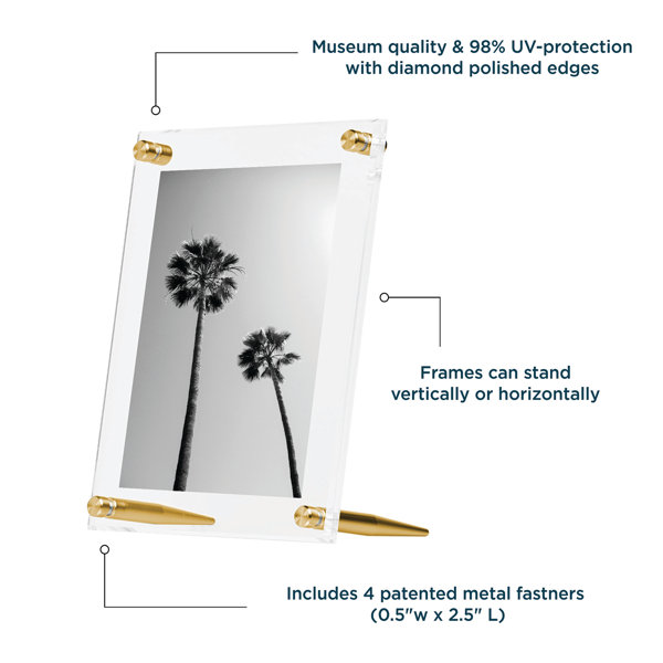 This single picture frame provides a modern spot to display your favorite memories on any desk or shelf. It's made from plastic with an acrylic photo protector that keeps your images safe from dust. This versatile piece features a slide-in insertion type, making it simple to swap out photos of friends, family, or graduation milestones whenever you like. The reversible design allows you to showcase your pictures in both horizontal and vertical orientations to suit your space. Plus, it functions well as a standalone accent or as part of a larger tabletop display.