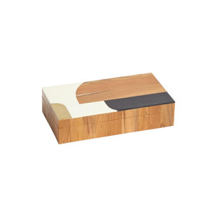 Teak wood, resin, and brass join forces to create these stunning abstract boxes. The substrate of MDF gives these items strength and stability to hold up over time without warping or movement.