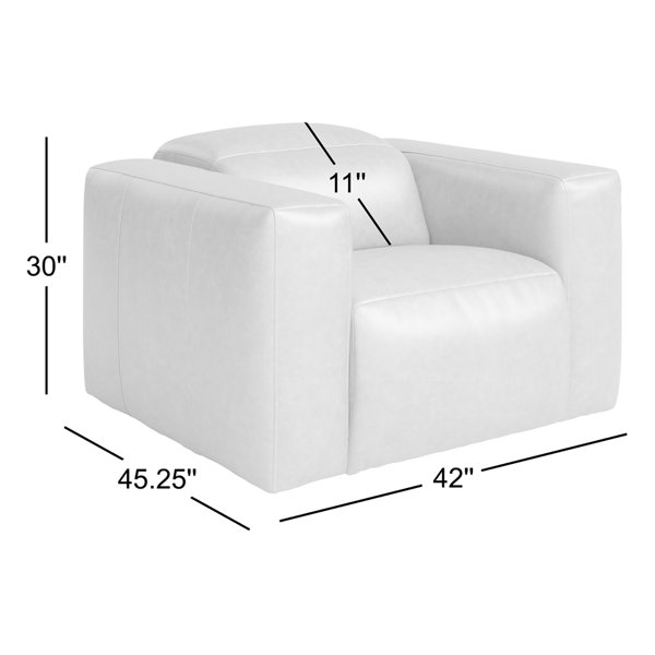 This oversized, comfy modern recliner doesn’t have that archaic, outdated recliner look. I love the modern low-back style visually, but I love the high-back design for comfort. This sofa gives both the aesthetics and ergonomics. I have fallen asleep in this chair twice. Lastly, I love that the headrest and footrest controls are separated. Plus, it has one push button to return the seat to the modern position. Also, all the controls are hidden. Most will not know it is a recliner. Lastly, the leather is a soft, natural leather.