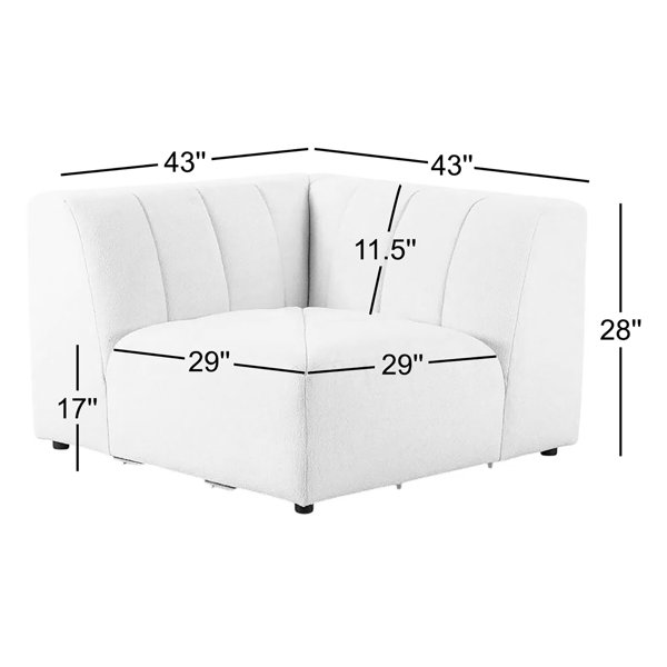 The sensible sectional meets modern Italian styling. Wide vertical channeling offers a luxurious take on modular seating. Bright fayette cloud covering awes in any space. Corner chair to the sectional.