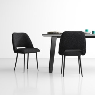 Small in stature, big on style – the chair that sits wherever you need it. Tactile fabric upholstery lends a luxe touch to this dining chair’s mid-century-inspired bucket seat. It rests on tapered metal legs in a powder-coated black finish, with plastic glides to protect your floors from scuffs. Set of two.