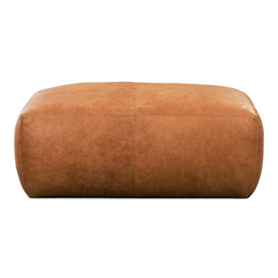 With this ottoman you can have a footrest, coffee table, and spare seats all at the same time. A win, win, win. Built on a solid rubberwood frame, it strikes a rectangular silhouette with reinforced joinery for a stable spot. It is upholstered in genuine Italian leather that will only get better over time as it develops its unique patina. With a duck feather filling, this ottoman offers just the right amount of cushion for whatever you're using it for. It measures 17'' H x 43'' W, so two people can fit for game night.
