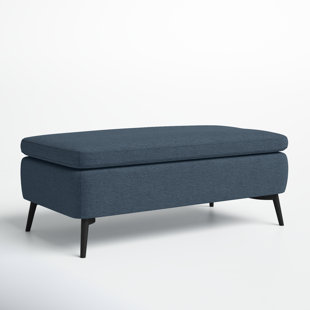 This ottoman pairs a retro-inspired design with a space-conscious footprint, making it ideal for spaces short on square footage. It's made with a solid and engineered wood frame, and has velvet upholstery. Foam filling and sinuous springs give the seat a balance between support and give. Details like the welted band around the seat, four dowel legs, and button tufts this ottoman has a mid-century look. Because it measures just 31.5'' wide, it's easy to fit into seating groups without taking up too much space.