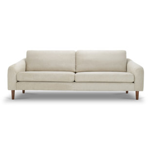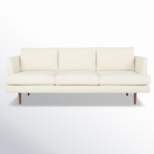 Drawing inspiration from mid-century Scandinavian design, this sofa showcases a sleek silhouette accented by cone legs + tapered track arms. It's built with a solid wood frame + wrapped in spill-resistant performance upholstery. Removable cushions make cleaning – and finding the remote – a breeze.
