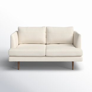 Drawing inspiration from mid-century Scandinavian design, this loveseat showcases a sleek silhouette accented by cone legs + tapered track arms. It's built with a solid wood frame + wrapped in spill-resistant performance upholstery. Removable cushions make tidying easy.