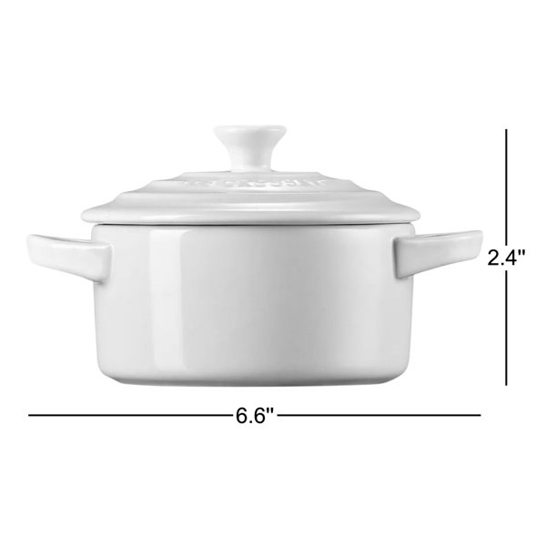 This Le Creuset stoneware round Dutch oven is the perfect size for accenting a table with dips, condiments, cheeses, salsas, and aioli. The lid makes it practical for heating sauces in the microwave or keeping snacks fresh. You can bake charming individual portions while entertaining guests. Crafted from high-quality durable stoneware, this piece will not chip, scratch, or stain. This product is a stylish and versatile kitchen essential.