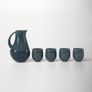 Handcrafted from lead-free stoneware, this durable drink set balances clean, timeless lines with vibrant glazes that show unique variations from their kiln-firing. The pitcher insulates your bevs to keep them cool on summer days, and the four stemless goblets have weighted bases for a better grip.