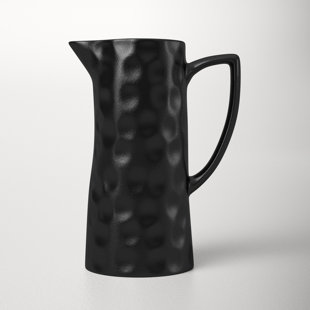 This pitcher's organic, handmade look infuses your kitchen or dining area with Scandinavian style. Crafted with ceramic in your choice of finish, it features a cylindrical shape with a coiled texture. A narrow, curved handle rounds out this sleek design. This pitcher serves twelve standard 8 oz. glasses. But it works equally well as a decorative accent or sculptural vase for fresh flowers. Dishwasher safe.