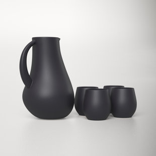 Inspired by Scandinavian style, this pitcher's streamlined look infuses your kitchen or dining area with a modern aesthetic. Crafted with ceramic in your choice of finish, it features an elongated cylindrical silhouette with a smooth surface. An integrated spout, teardrop-shaped mouth, and slightly angular handle round out this sleek design. This pitcher serves twelve standard 8 oz. glasses. But it works equally well as a decorative accent or sculptural vase for fresh flowers. Dishwasher safe.