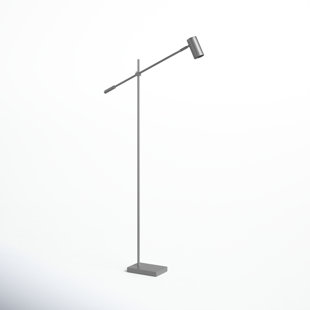 With a scaled-back silhouette and clean lines, this floor lamp layers a sleek look with nods to mid-century design into your space. Crafted from metal in an all over black finish, it features a circular disc foot with a high, angled arm and body that ends in a low-profile cone shade. The shade directs the light of the 40W bulb (not included) downward, making this lamp ideal for brightening a reading nook or sofa. It's powered by a foot switch, and has a low-impact footprint that's easy to angle throughout your space.