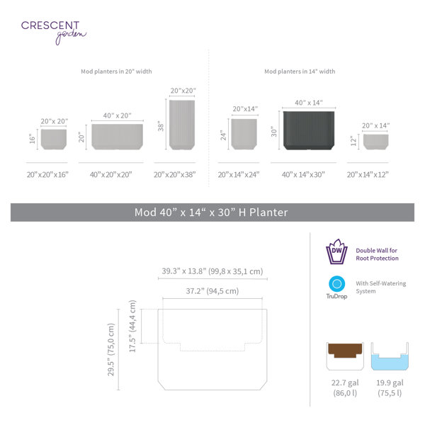 Got this Mod planter and it's been solid. The 40'' width gives me plenty of space to plant a nice mix of flowers and herbs without them feeling cramped. It looks clean and modern in my garden bed, which was exactly what I was going for. I placed bricks underneath to level it. Super sturdy—it's held up well through the weather, and the drainage works great, so my plants aren't sitting in water. The only downside is it's pretty heavy once you fill it with soil and plants, so make sure you put it where you actually want it before it's fully planted up. Would definitely buy again. Does the job and looks good doing it.