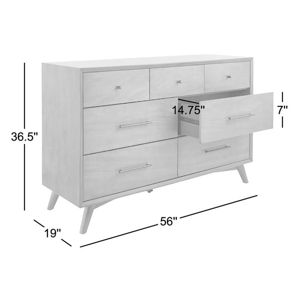 I am extremely impressed with the quality of this dresser. The design is sleek and modern, and the white finish is flawless. It feels very sturdy, and the seven drawers provide plenty of storage space while gliding open and closed with ease. The black hardware provides a beautiful contrast that really elevates the look of the room. It’s a well-built, beautiful piece that I highly recommend!