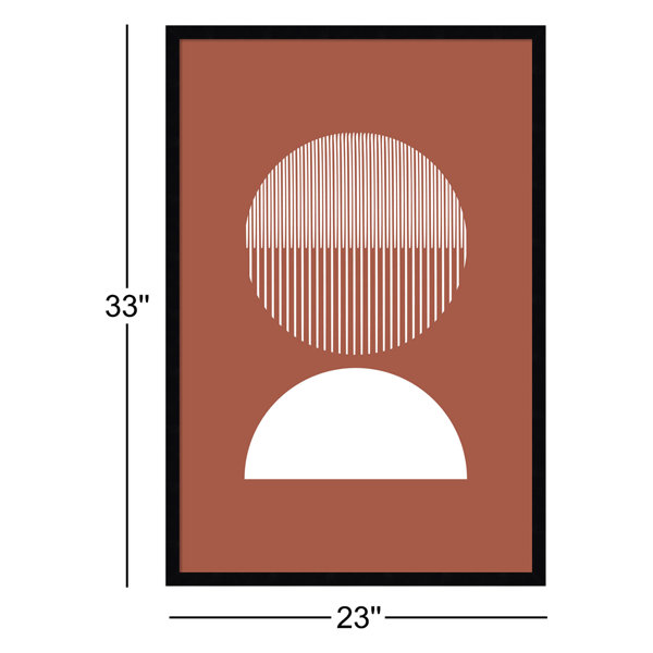A reproduction of work by artist Jacob Goossen, this abstract graphic print is defined by its precise linework, balanced forms, and earthy sienna + white palette. It’s giclee printed using premium inks for lasting depth of color. Arrives in a wooden frame with hanging hardware.