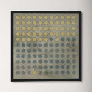 With muted tones and a blend of clean and messy line work, this graphic art pint adds a striking modern look to your space. Printed in the USA, this piece by artist Jacques Pilon features a neutral, stone-like background with a series of circles, each one filled irregularly with yellow or blue paint. It's printed on archival paper using giclee inks for an accurate, lasting reproduction of the original work. This piece arrives framed and matted with included wall mounting hardware, so it's ready to hang right out of the box.